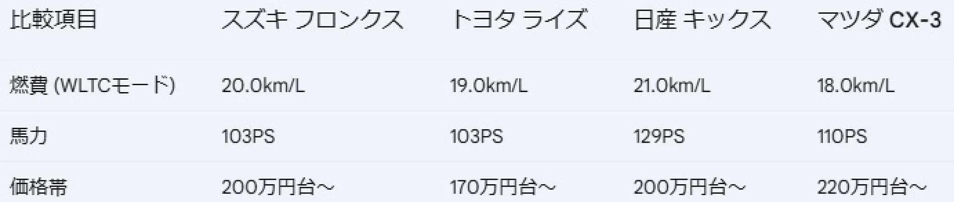 フロンクスは、同カテゴリの競合他車と比較しても際立った特徴を持っています。