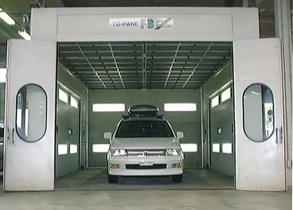 鈑金後の塗装はこちらの定温焼付け塗装ブース内で行います。塗装時の塵の混入を極限まで抑え、高品質な塗装の仕上がりを実現します。