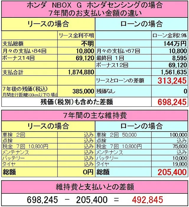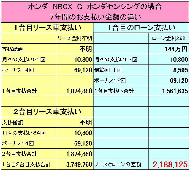 ② 上記は7年リースで計算しているが、5年や3年のリースで14年間を考えるともっと高額な支払総額の違いになる。