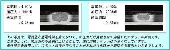このスポット溶接機3つの条件が最適でなければ素材同士がくっつきません。
