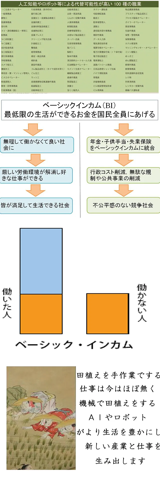 新しい仕事もたくさん出来ますし、ベーシックインカムなど社会制度の変革と共に経済も生活も大きな変化をしてきます。