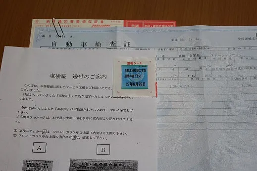 車検数日後に当社より車検証と車検ステッカーを送付いたします。