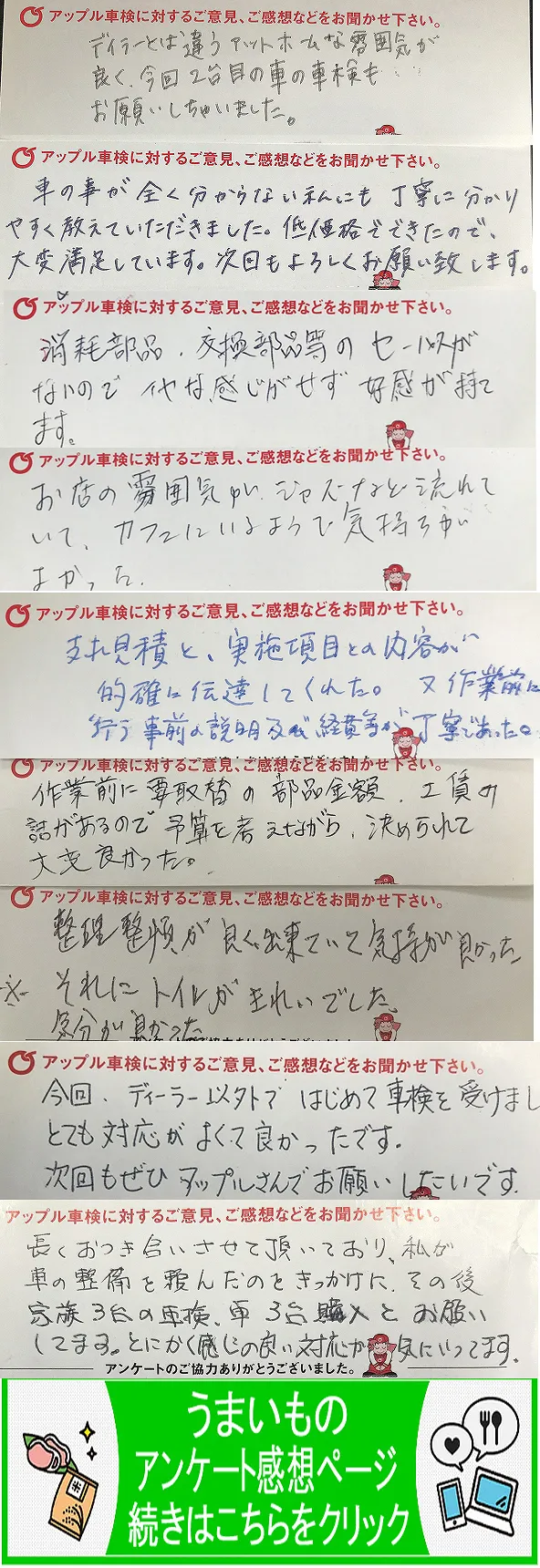 車検を受けていただいたお客様からいただいたアンケートとなります。
