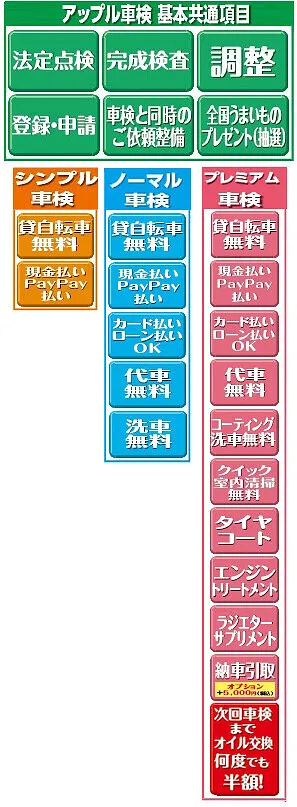 シンプル車検とノーマル車検、プレミアム車検は点検整備の内容は同じです。