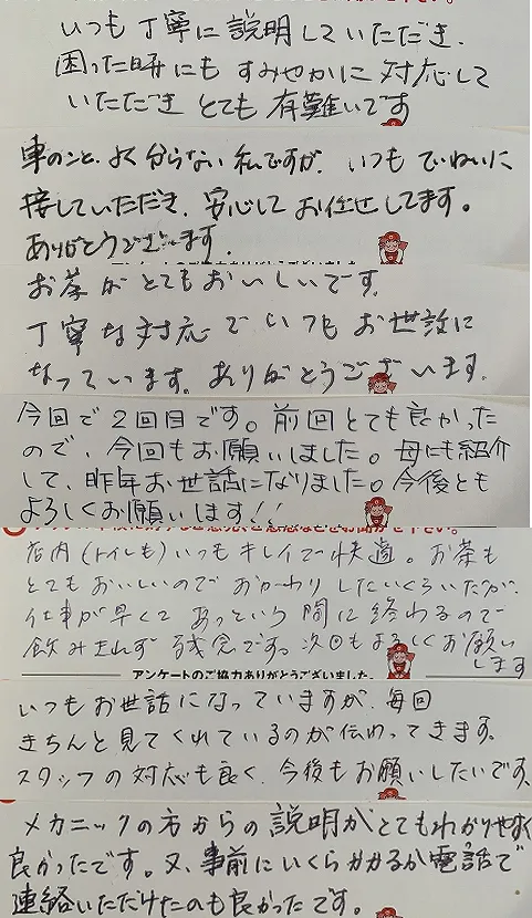 皆様に益々ご満足いただけるようにアンケートを参考に更にスタッフ一同邁進していきます。