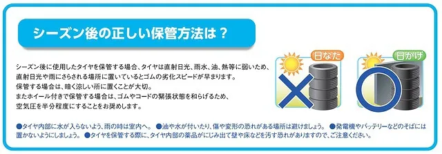 どんなに良いスタッドレスタイヤを購入いただいても、保管の仕方が悪ければ数年で氷上性能は急速に落ちてしまいます。