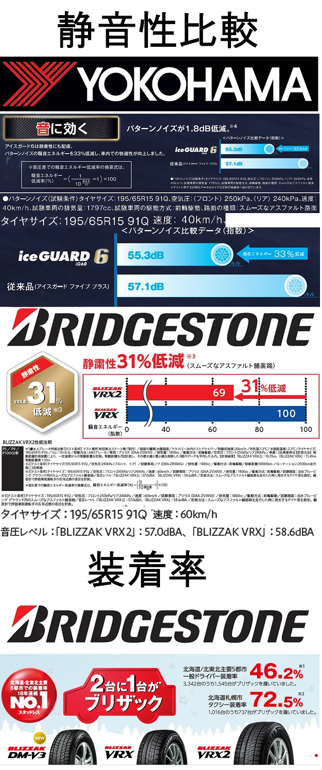 上記のそれぞれのスタッドレスタイヤのカタログを良く読むと