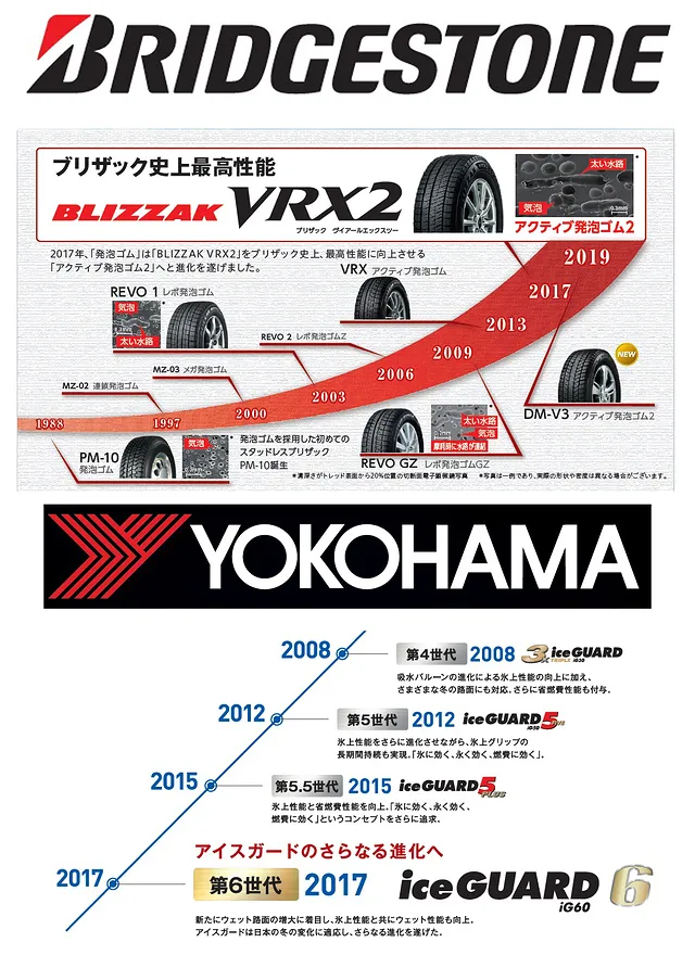 ヨコハマタイヤ、ブリジストンタイヤどちらのスタッドレスタイヤが良いのか?